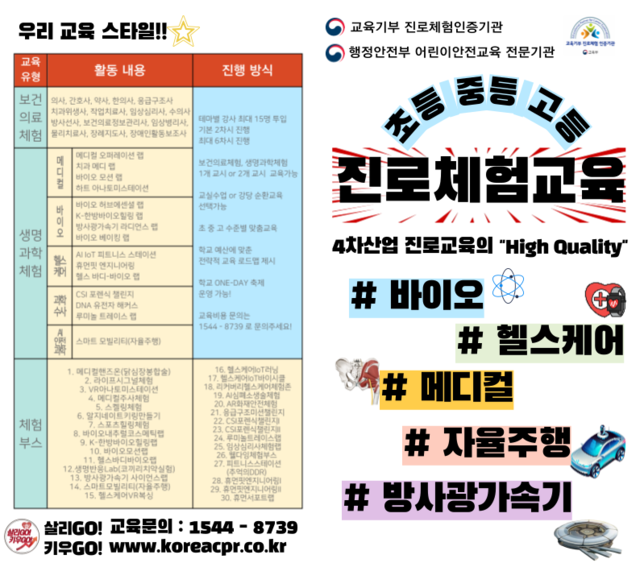 응급처치 교육과 진로체험교육은 모두 미래를 위한 “씨앗(생명)”과 같습니다.