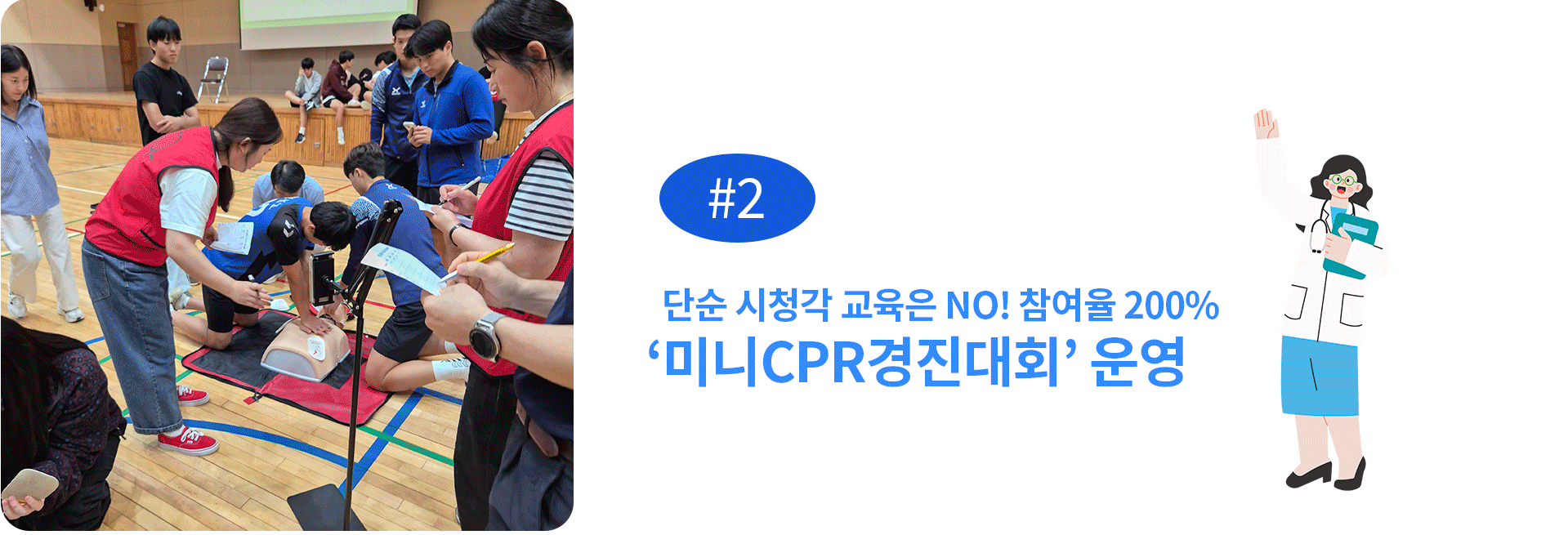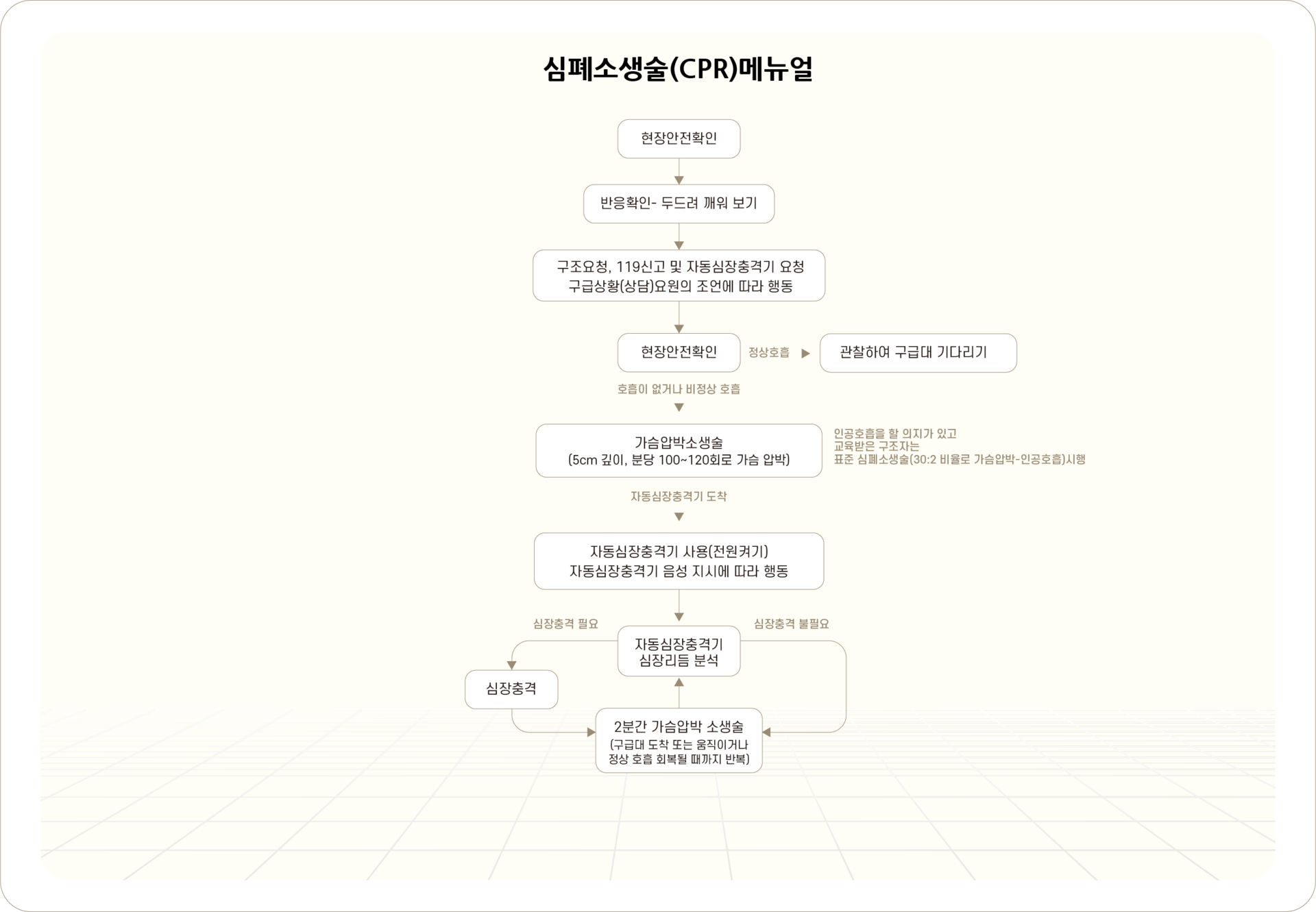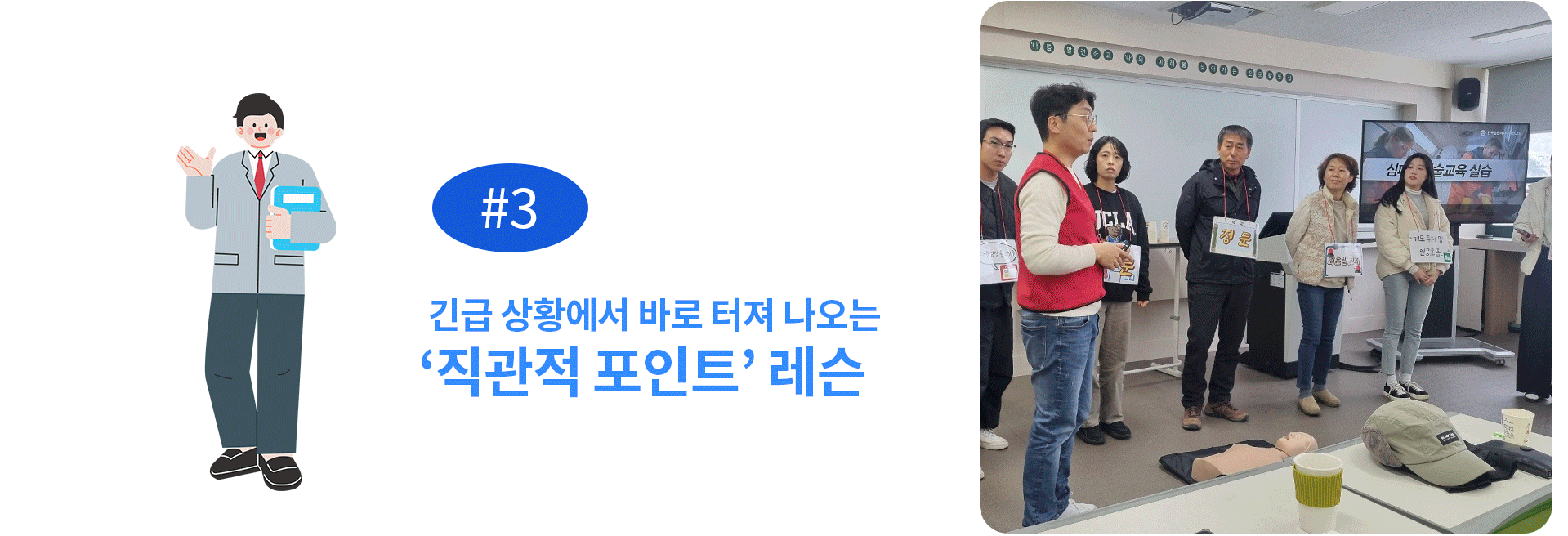 교육을 통해 현장에서 CPR을 직접 수행할 수 있도록 훈련하고 있습니다.