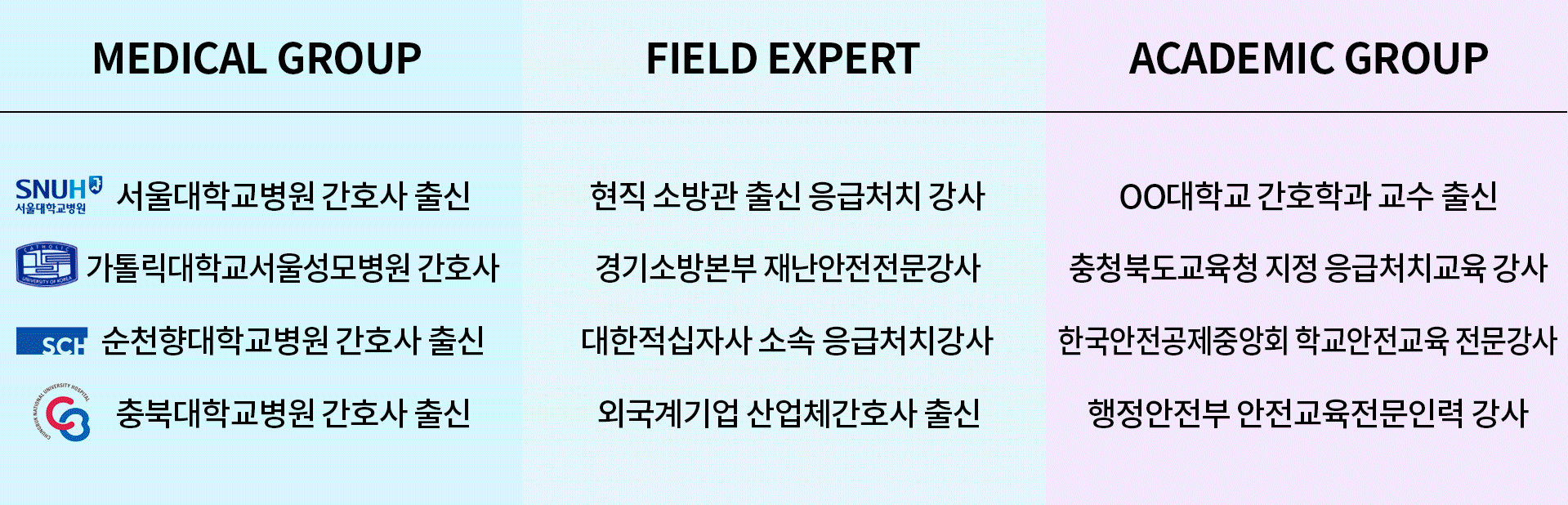 한국응급처치메디컬그룹은 고품질의 차별화된 강사진으로 구성된 전문 교육 기업입니다.